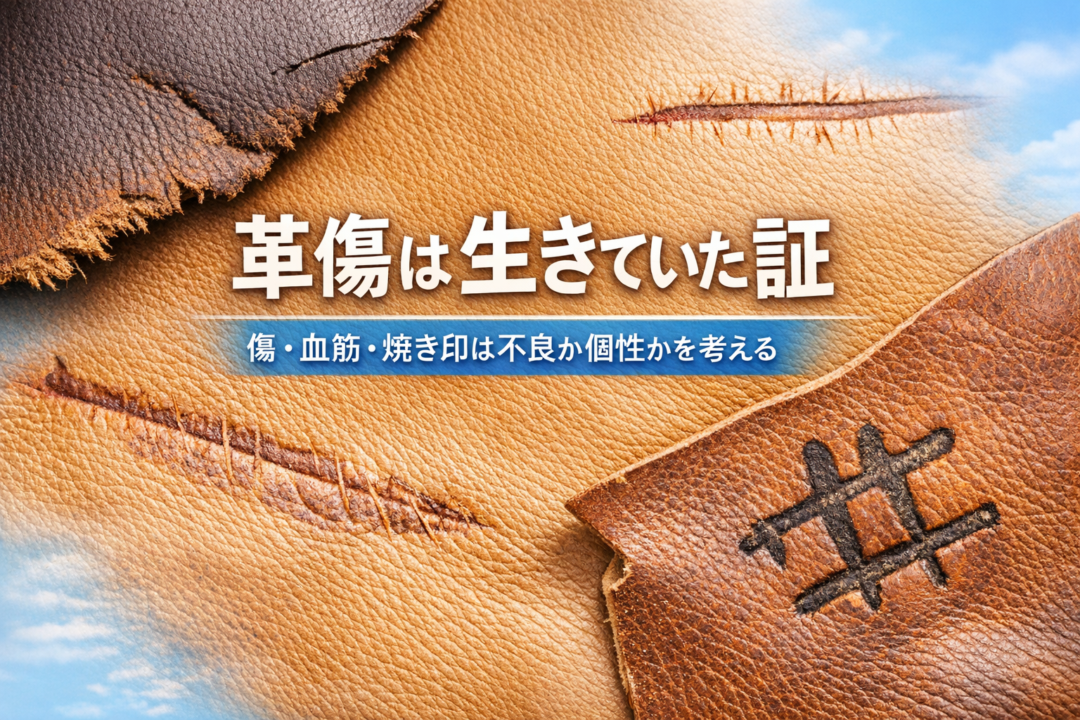 革に現れる傷、血筋、血管跡、焼き印などは、しばしば「不良」と呼ばれることがあります。ただ実際には、その多くが素材そのものの欠陥というより、その製品の方針に合うかどうかで判断されている場合が少なくありません。